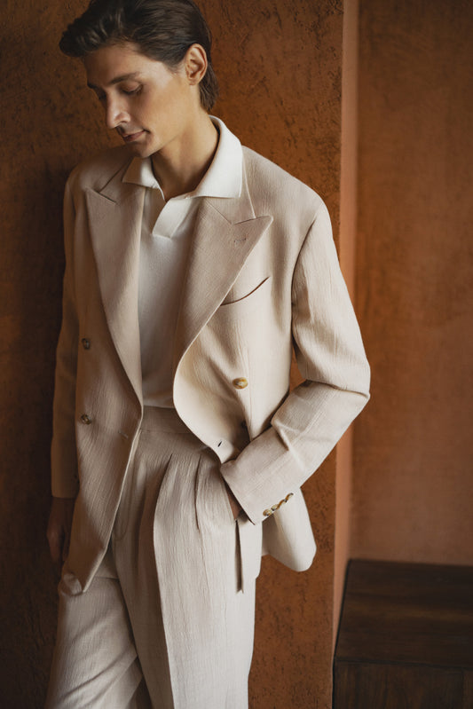 After Librairie came Nomade. Where Librairie explored classic menswear through stillness and study, Nomade takes that spirit on the move. The collection introduces lightweight jackets and trousers in linen, designed for travel, everyday wear, and life in motion. Now available.