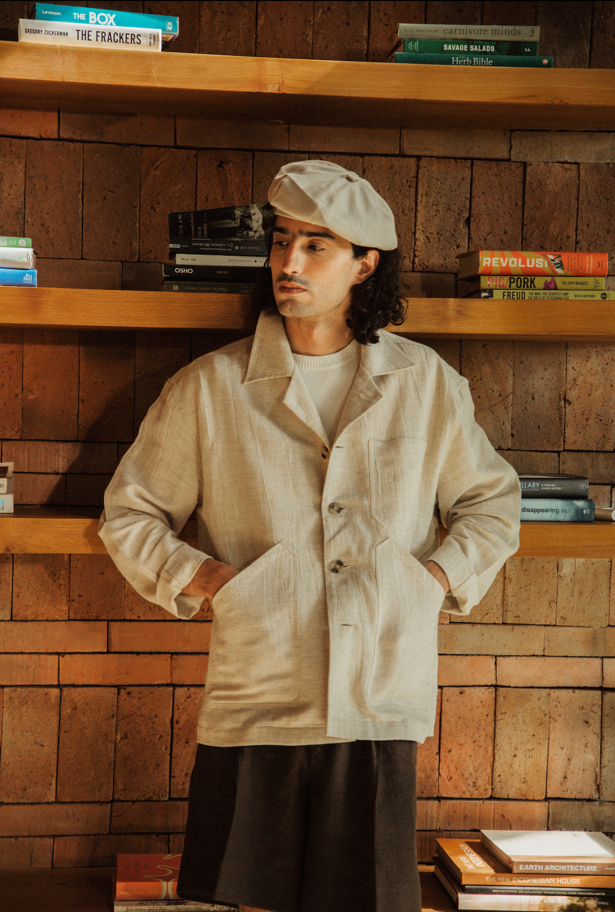 Inspired by classic French workwear, this piece reinterprets the utilitarian staple through the lightness of linen. Retaining the straightforward character of traditional chore garments—clean lines, practical pockets, and a relaxed fit—it is softened by linen’s natural breathability and texture.