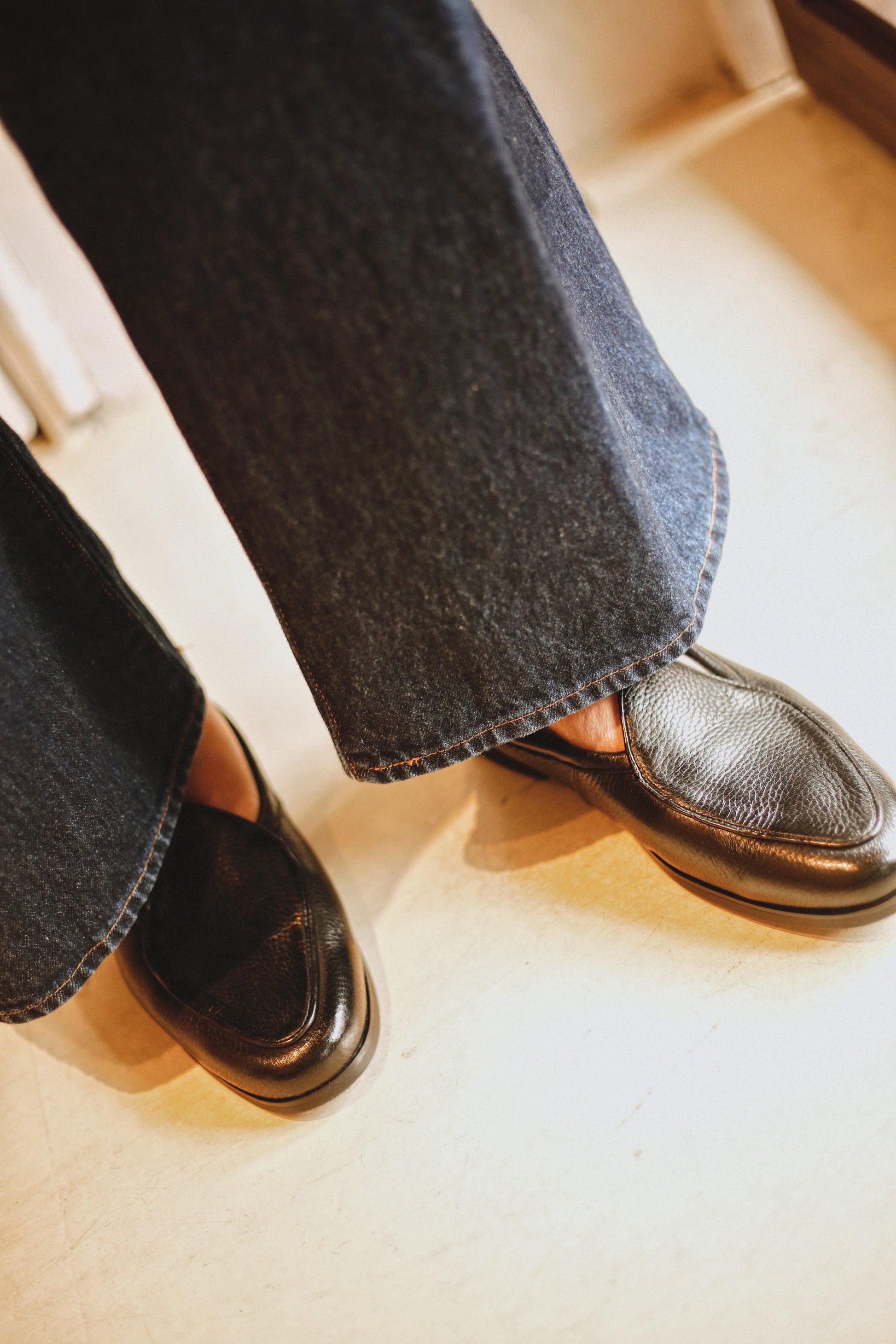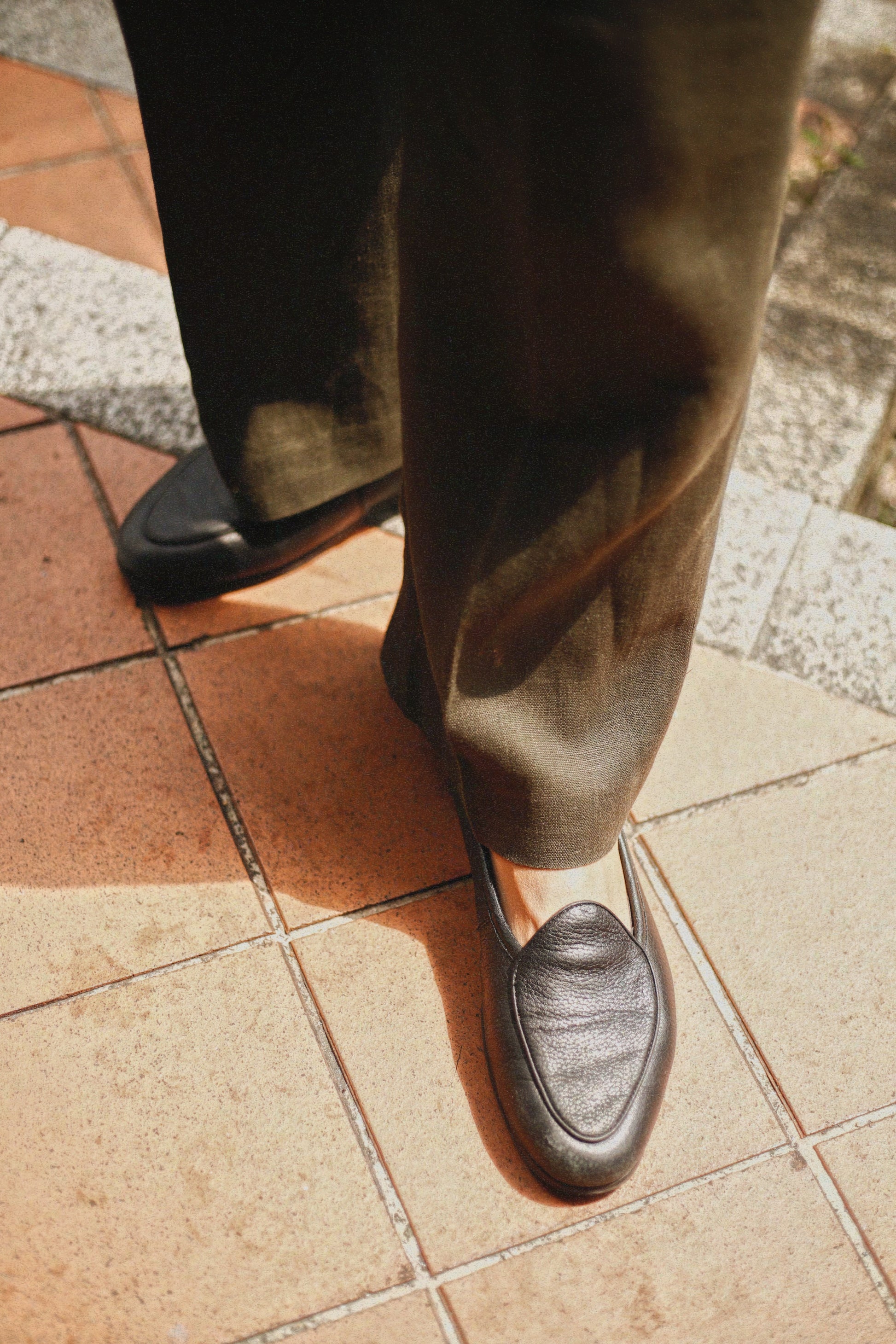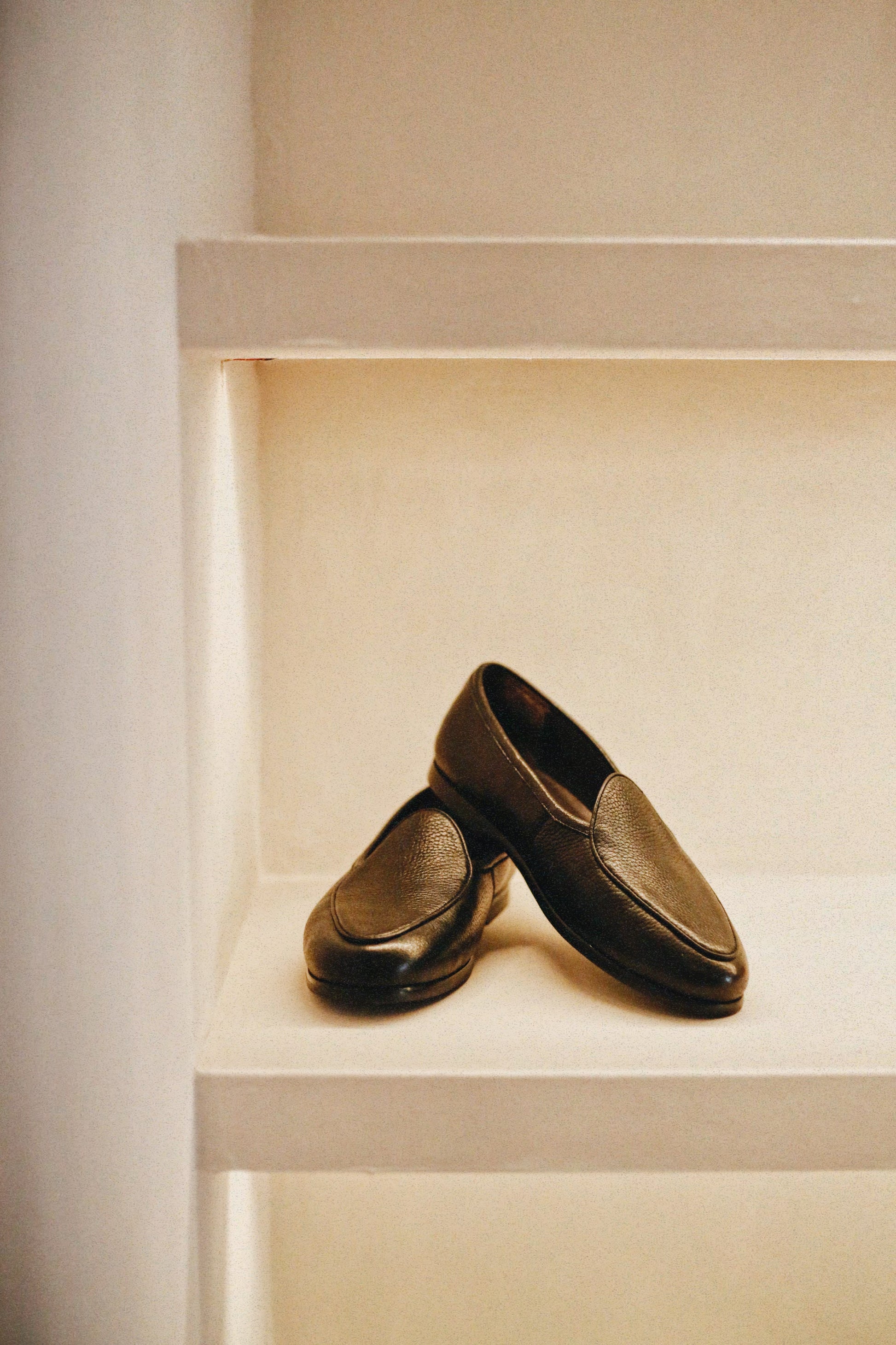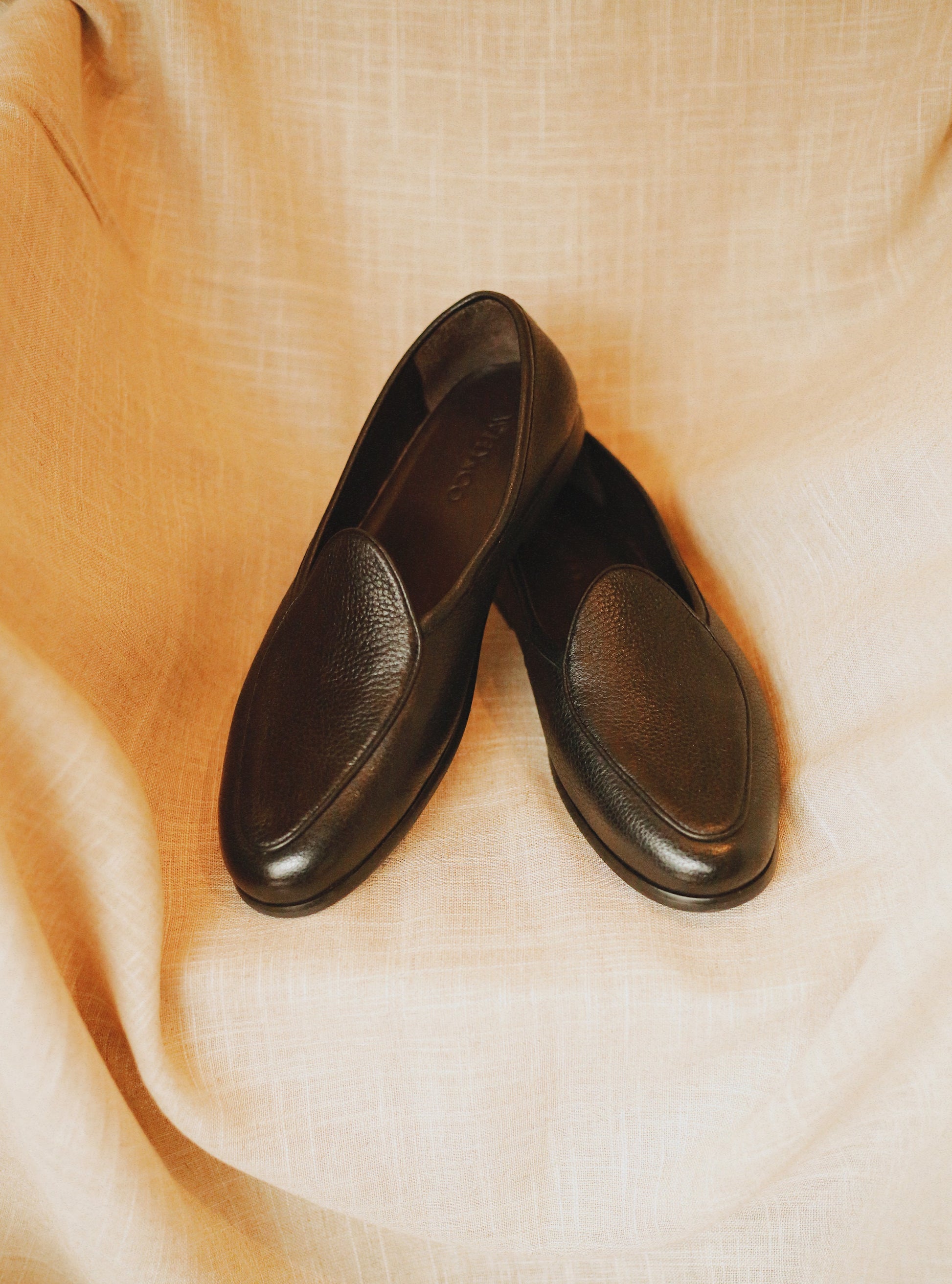 A black pebble-grain loafer cut from supple New Zealand deerskin, Fino brings a grounded elegance to the everyday. Soft to the touch yet resilient in structure, it embodies the understated character of our footwear debut.